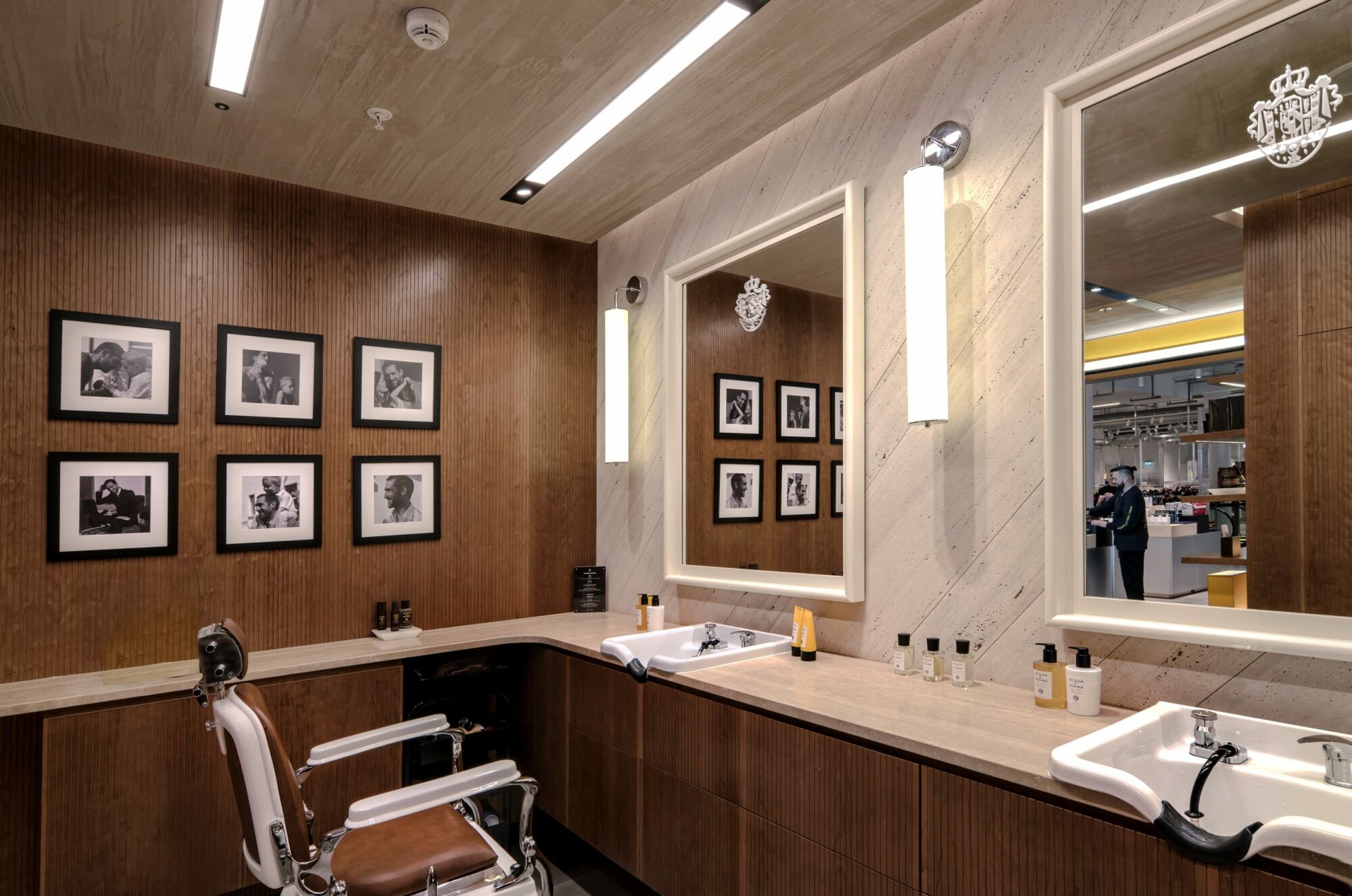 Every great Italian barbershop tells a story. Our design for Acqua di Parma Barbiere in Selfridges reflects the time-honored traditions of the Italian barbershop experience, creating a welcome spot for patrons to sink into the scents of Collezione Barbiere.