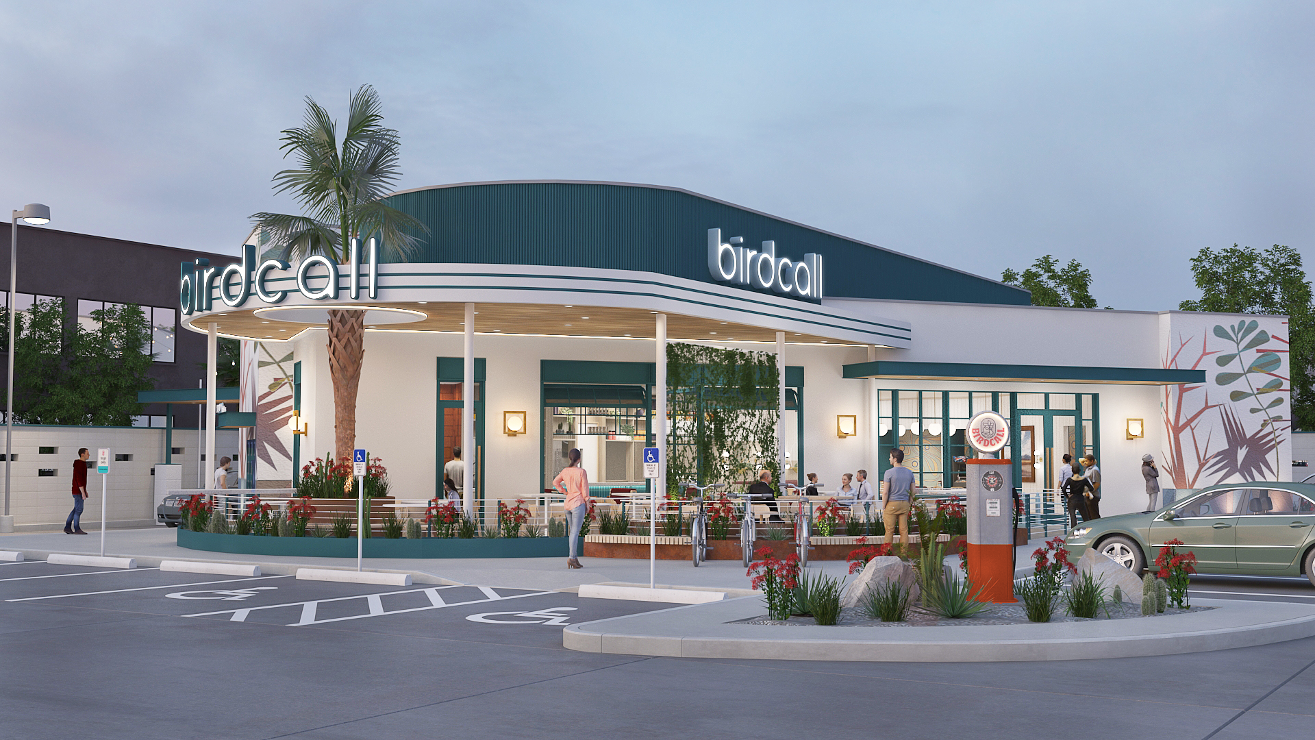 Drive with us through Phoenix, Arizona. Prickly Saguaro cacti pop from the rugged land, framed by a sky glowing with brilliant colors at sunset. To the right, nestled in the heart of downtown Phoenix, what was once a charming gas station is now transforming into a pit stop for new flavors – Birdcall.