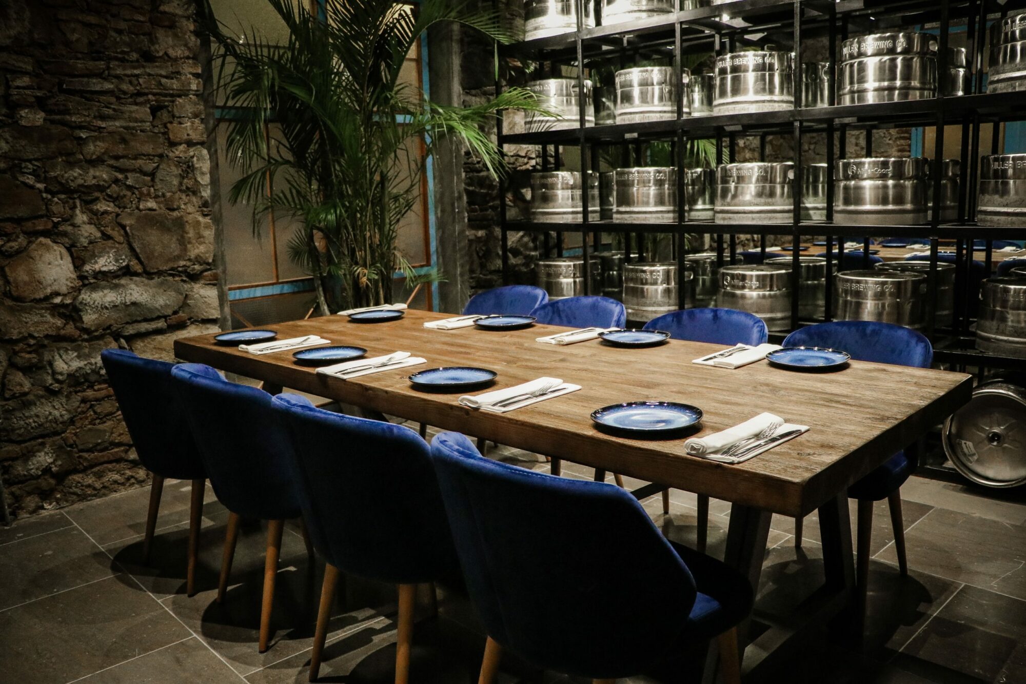 Comfort and conversation are major design focal points; curved, blue booths offer guests cosy spots to settle in for the night, while high level, private dining rooms and terrace seating set the scene for every occasion – all wrapped in brewhouse artwork, keg displays and pops of brand blue. Warm, decorative lighting cascades from the second floor, encouraging a relaxed atmosphere that pairs well with the restaurant’s small plates and sample menus. Natural materials and abundant plants work in contrast with the urban fixtures, transforming a historic building into a modern bar experience. Now look up – the blue moon, a statement light feature that glows with the confidence of a brand who launched in Denver and now pumps life into Panama City.