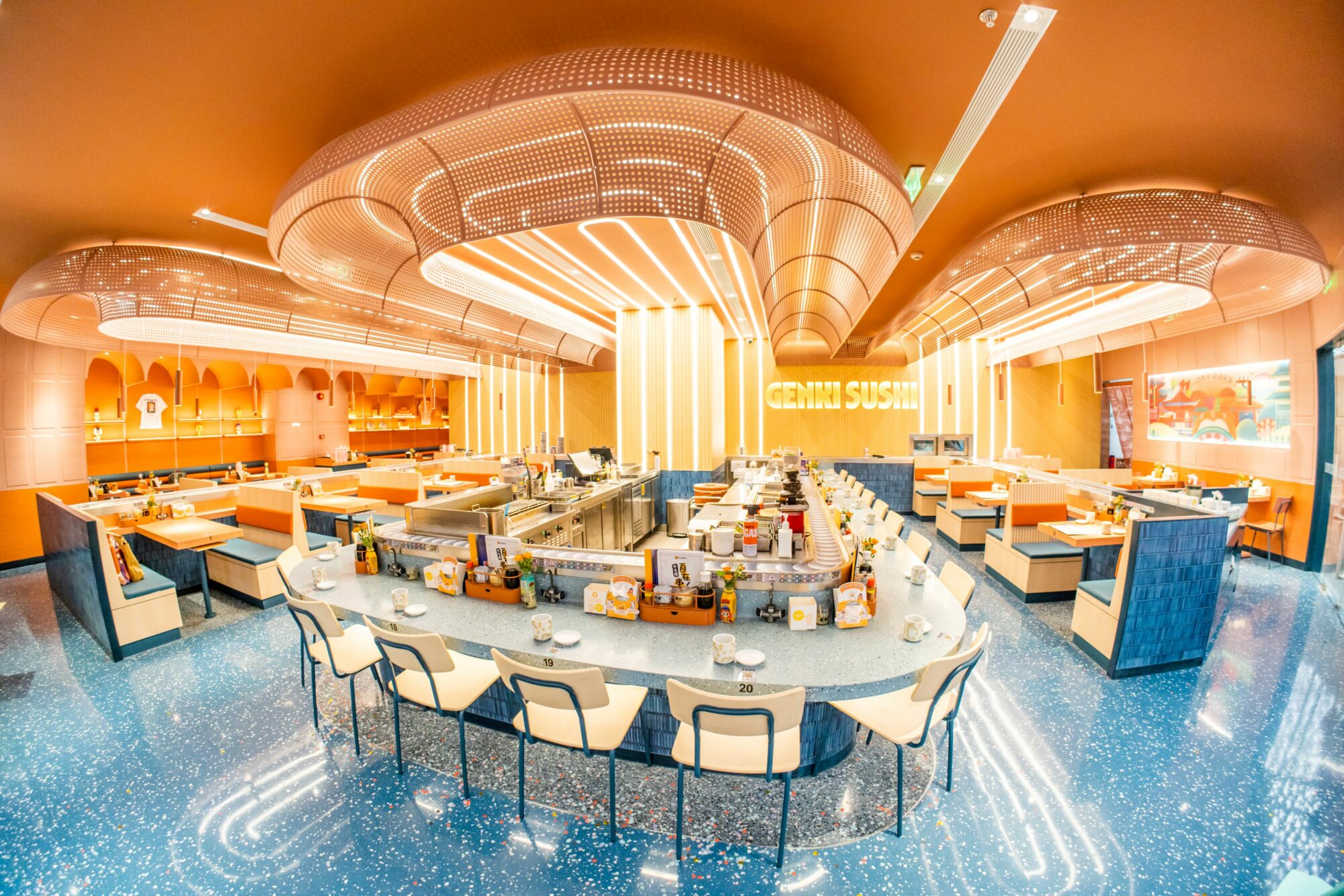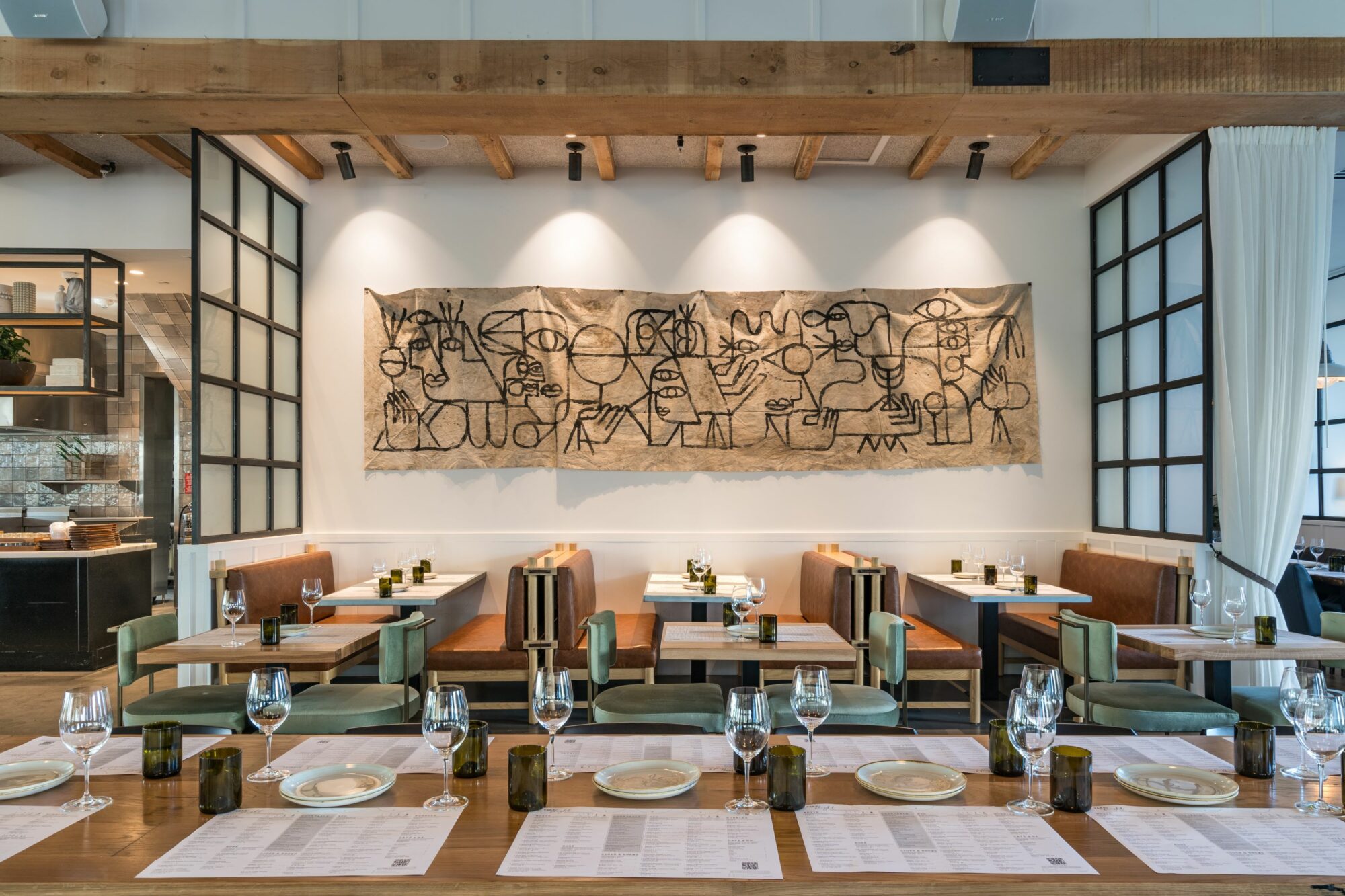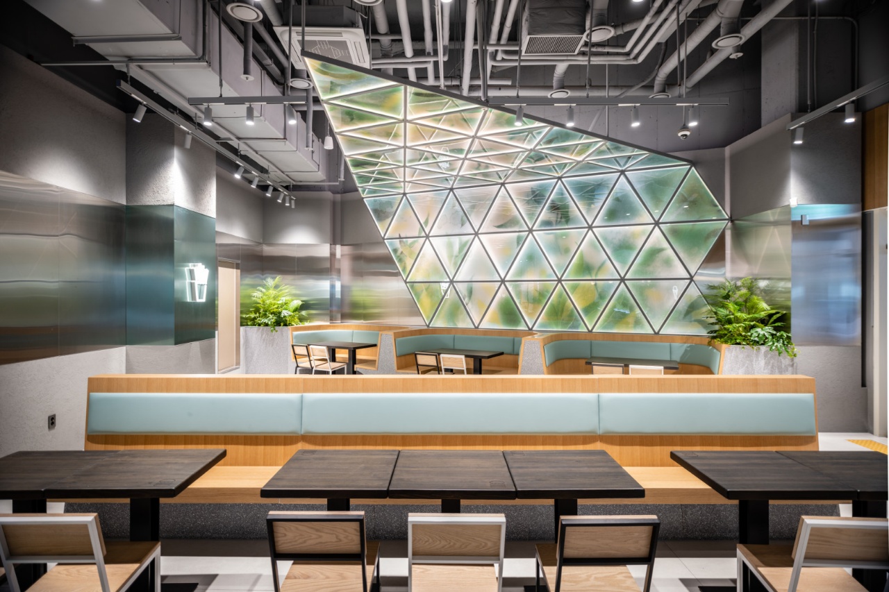 The ground floor common areas offer energetic pops of color, and modularity is the common thread amongst the design inspiration to foster a vibrant community living experience. Flexible lounges, co-working spaces, a cafe, a podcast studio, and more encourage the residents to spend time with one another and form a vibrant resident community.