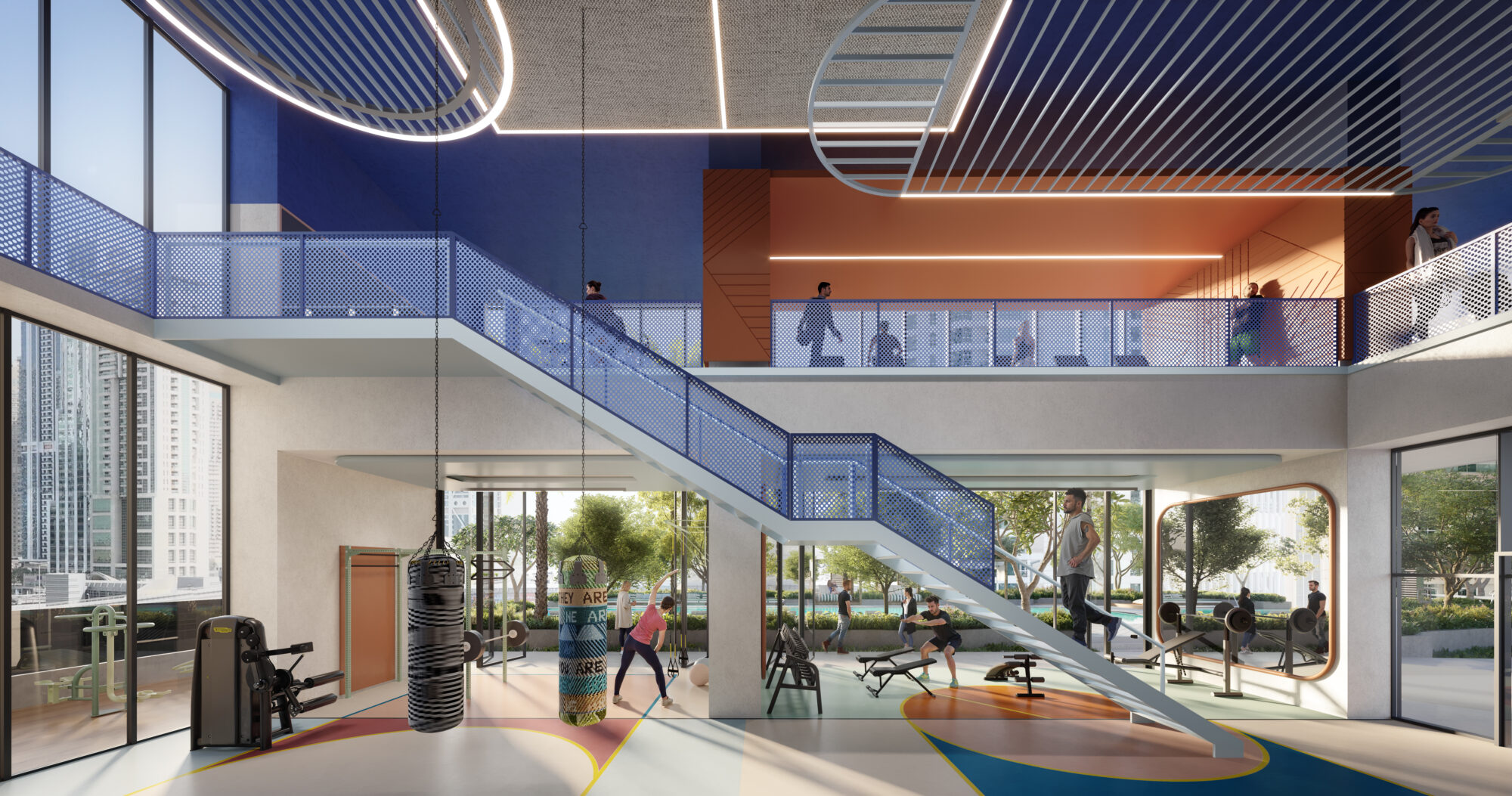 Indoor and outdoor spaces blend seamlessly at the podium level, where relaxation, fun and connection underpin each space’s form and function including gym, multipurpose hall, gaming lounges, karaoke rooms, vitamin bar, Crank spin studios and rentable guestrooms. While upper levels create pockets of calm for wellness.