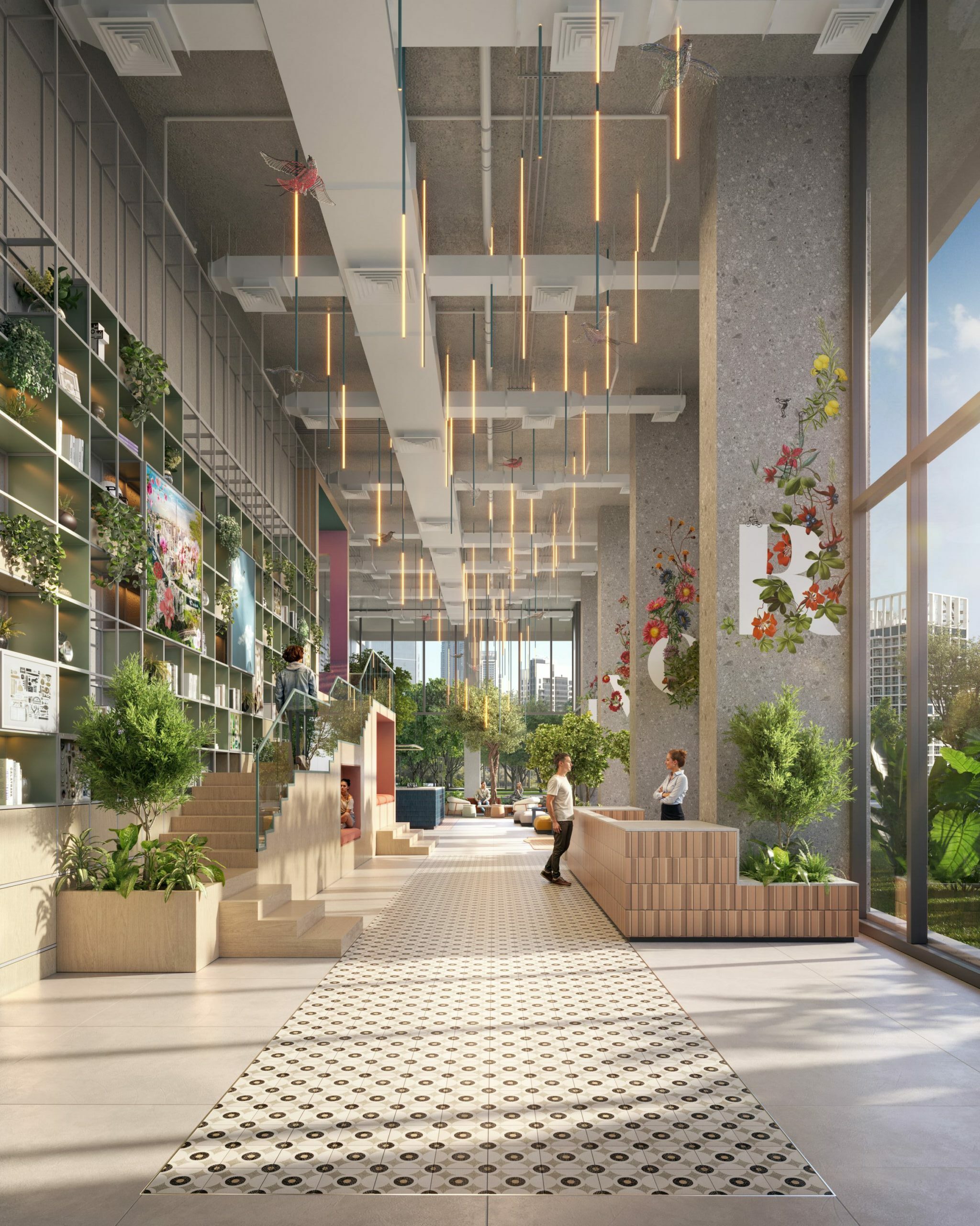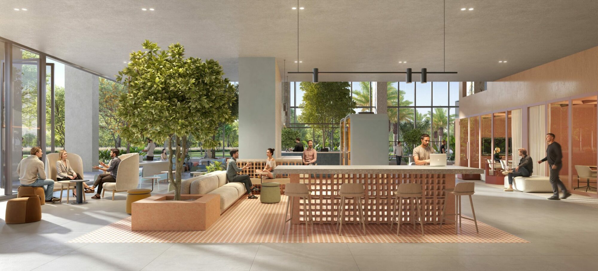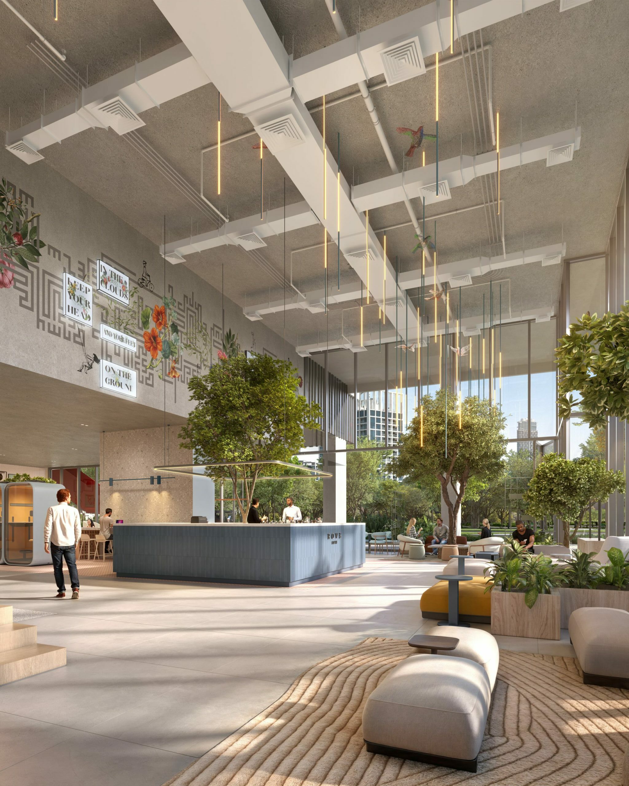 The focal point of the entrance experience is the large double-height library wall with multilevel seating creating an inviting hub for reading, working or simply relaxing; while the surrounding café, cozy lounges, communal workspaces, retail shops and meeting rooms offer plenty more spots to connect and unwind – creating pockets of calm amidst the energy of Dubai’s bustling Business Bay district.