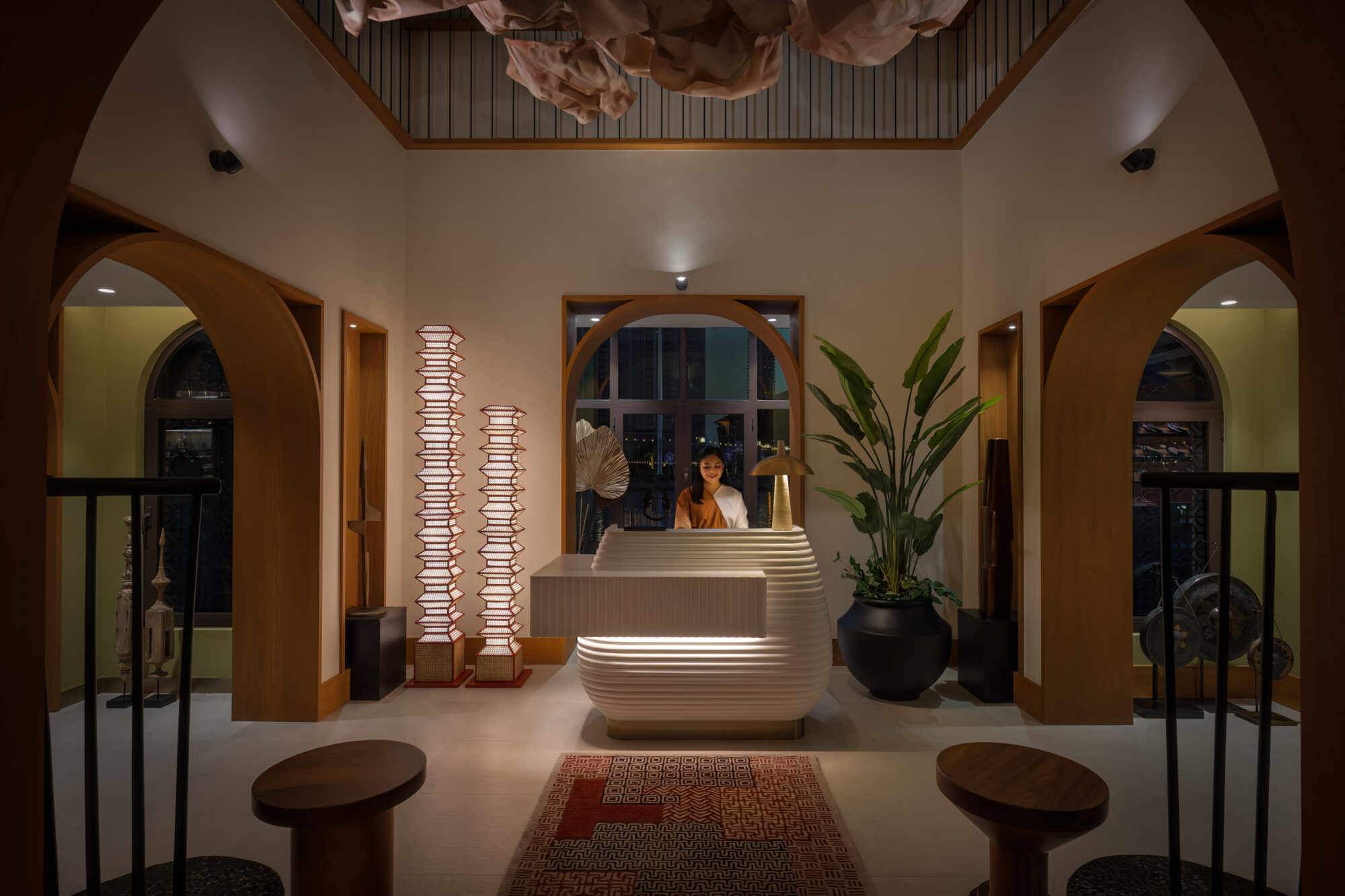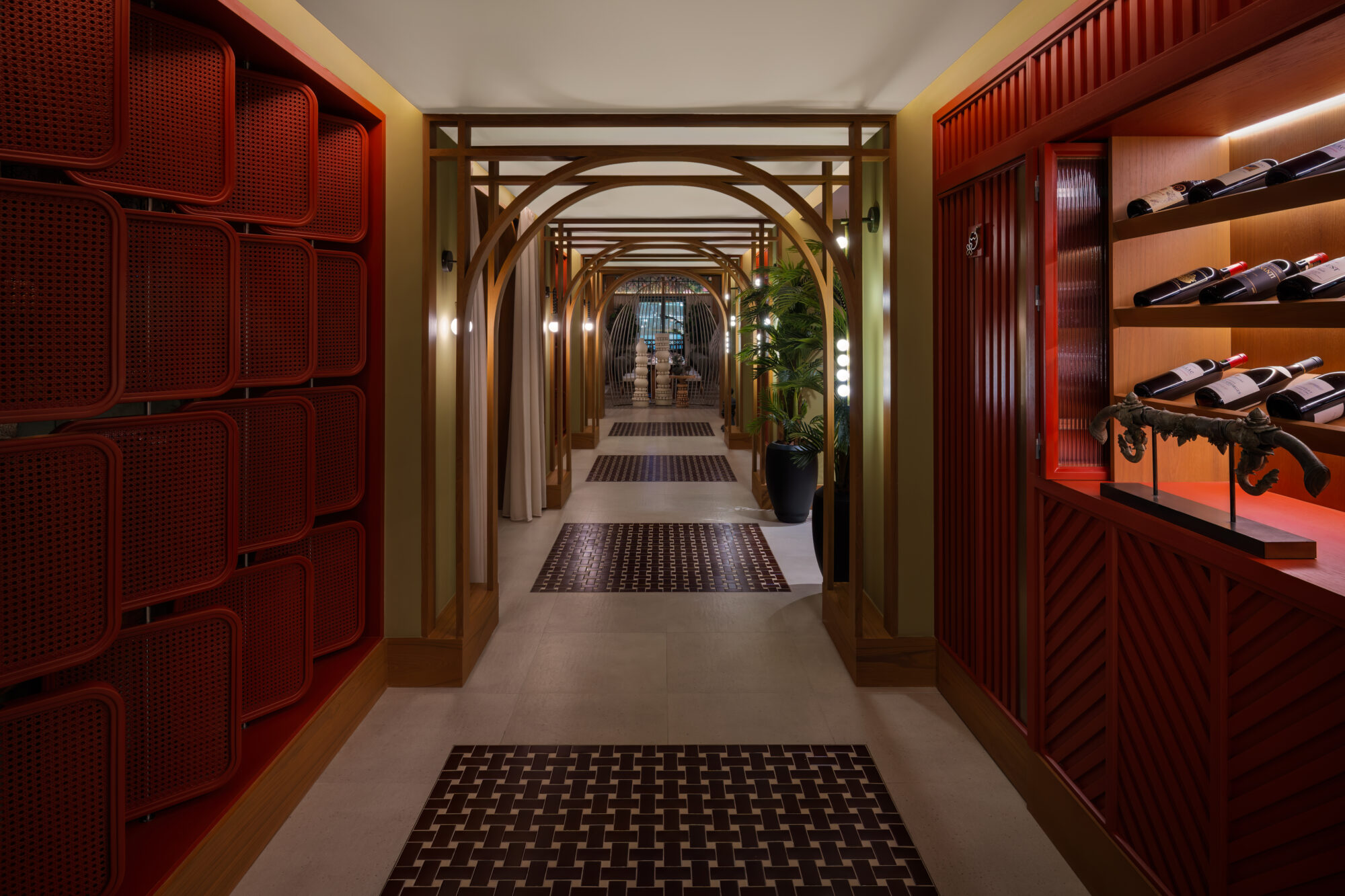 From the moment of entry at the arrival corridor leading towards the hostess station, there is a sense of being transported to a world of warmth, intimacy and hospitality, setting a scene for what lies ahead.