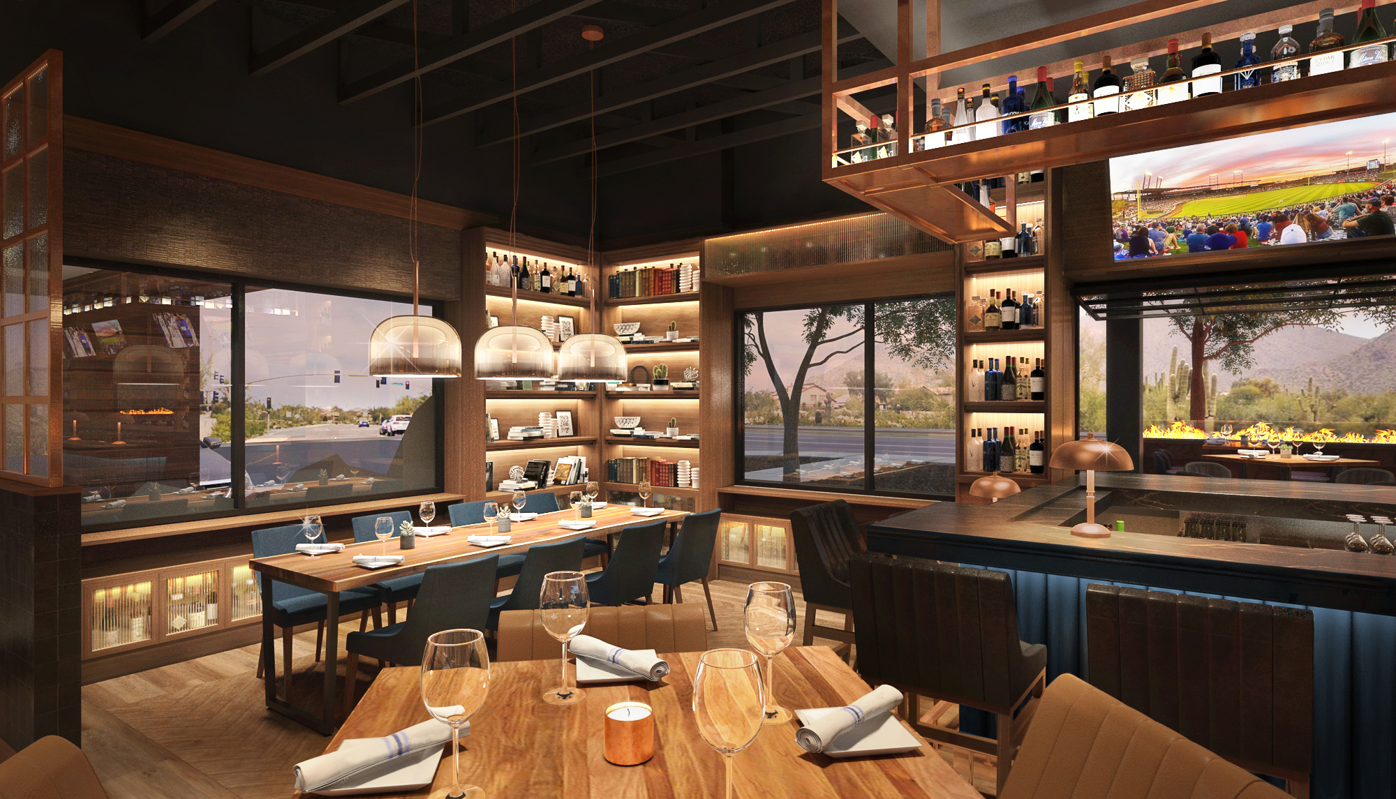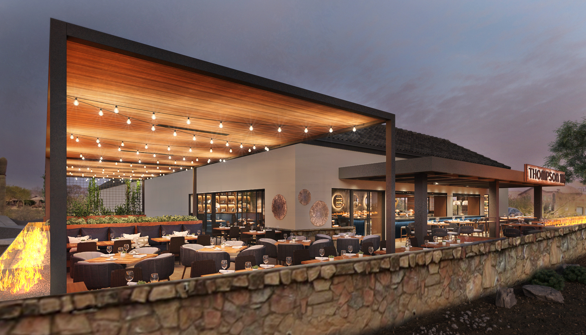 Nestled directly adjacent to Thompson Peak in the McDowell Mountain neighborhood sits our design for Thompson 105, where the philosophy that food tastes better outside in nature is fully respected.